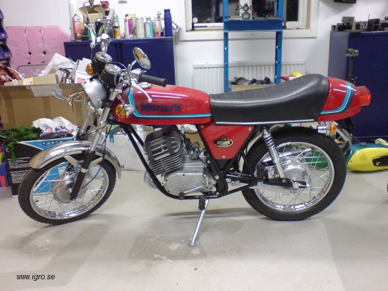 Minulle tuli osina laatikoissa tuollainen -76 Monark 125 TTS Sachs moottorilla.