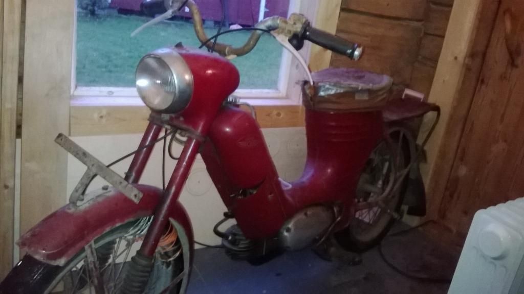 Terve vaan kaikille! Viimeiset 20 vuotta on ollut haaveissa laittaa isäni -57 vuosimallin 50cc Jawa 550 Pionyr takaisin tien päälle. Eilen otin ensiaskeleet ja ajattelin samalla kirjoittaa tänne vinkkien/neuvojen toivossa. Tavoitteena olisi ensi kesänä saada pyörä liikenteeseen.  :)