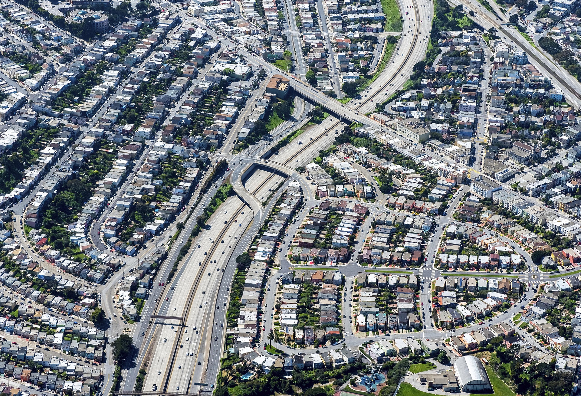 Ei suojateitä, ei jalkakäytäviä, ei katuvaloja, yli- tai alikulkuja, vain autoramppeja.