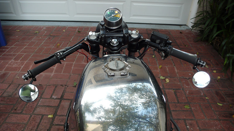 Kävin koukkaamassa pari kierrosta lähikadulla ja kyllä se muuten tuntuisi pelittävän hyvin. Ajoasennon kanssa hakemista vielä, en haluaisi lyödä lommoja tankkiin clipareiden takia. Jos ne on liian suorassa niin tuntuu kämmenissä heti, ja taas sillon kun on kämmenille hyvin niin keulaa ei voi kääntää stoppeihin.