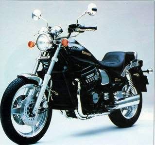 Heti tuli mieleen etta naita Eliminatoreita tuotiin aika paljonkin aikaisessa vaiheessa. En edes muista oliko niita silloin Sumekon tuotevalikoimassa. 250 Eliminator ruvettiin tuomaan kun oli tarvetta sellaisista alle 25HV pyorista. Muistaakseni Sumeko toi ZL500 Suomeen verotuksen takia mutta sehän loi kysyntää ZL600:lle, vaikka se oli vahan tyyriimpi. Ja sitten oli se tehokas muskeli pyora ZL1000. Meille oli myös helppoa tuoda vahan erilaisia vareja kuin Sumeko ja erilaisuudella oli kysyntää. Alla vahan kuvia niistä Elliminatoreista: