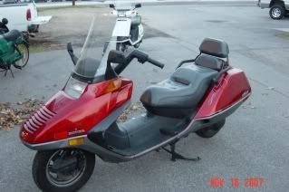 Jo kyllahan mina ne Spaziot muistan. Mielestani se vaalea keittiön sininen vari oli aika…erikoinen. En muistanut kuitenkaan koko juttua Helixista kun kirjoitin harmaatuoduista Hondista.Kuitenkin sille kuuluu paikkansa siihen koska se oli kai ensimmainen n.k. maxiskootteri mita tuotiin Suomeen. Se ensimmainen peli minka toimme oli ihan USA-mallinen viinipunainen Helix vuosimalli  muistaakseni 1986. Se oli upea peli jo siihen aikaan ja mielestäni se olisi vieläkin ”myytavaa” vaikka sen design on jo 25 vuotta vanha. Pyora oli taman värinen ja taman mallinen: